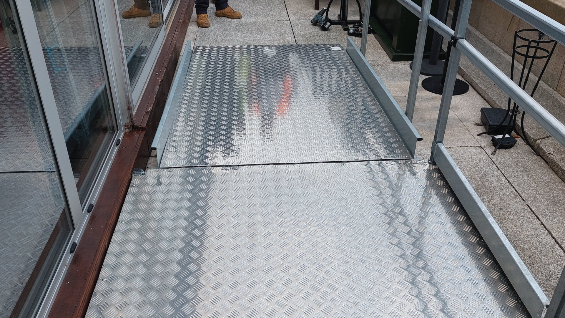 Custom Platform Design: Rather than attempting to address each elevation change individually, RampCo engineered a unified platform system that created a consistent, level surface across all marquee entrances. This approach eliminated the root cause of the accessibility issues whilst providing a cohesive solution.